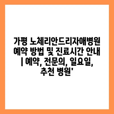 ✅ 가평 노체리안드리자애병원 예약 방법과 진료시간을 지금 바로 알아보세요!