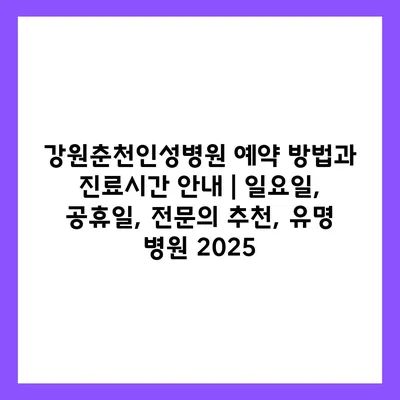 강원춘천인성병원 예약 방법과 진료시간 공지 | 일요일, 공휴일, 전연락 추천, 유명 병원 2025에 대해 자주 묻는 질문 TOP 5