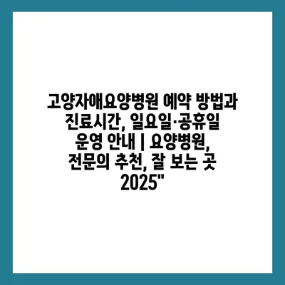 고양자애요양병원 예약 방법과 진료시간, 일요일·공휴일 운영 공지 | 요양병원, 전연락 추천, 잘 보는 곳 2025에 대해 자주 묻는 질문 TOP 5