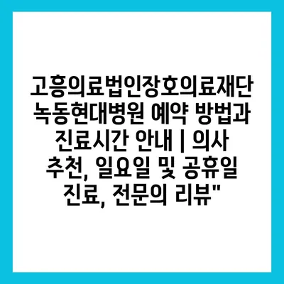 ✅ 고흥의료법인장호의료재단 녹동현대병원의 진료시간과 예약 방법을 지금 바로 알아보세요.