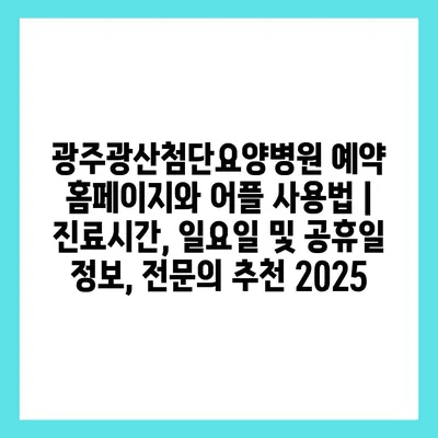 광주광산첨단요양병원 예약 홈페이지와 어플 사용법 | 진료시간, 일요일 및 공휴일 정보, 전연락 추천 2025에 대해 알아보겠습니다.
