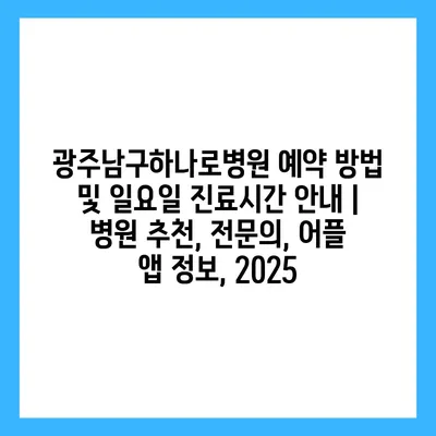 광주남구하나로병원 예약 방법 및 일요일 진료시간 공지 | 병원 추천, 전연락, 어플 앱 정보, 2025 에 대해 자주 묻는 질문 TOP 5