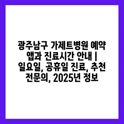 광주남구 가제트병원 예약 앱과 진료시간 공지 | 일요일, 공휴일 진료, 추천 전연락, 2025년 정보 에 대해 자주 묻는 질문 TOP 5