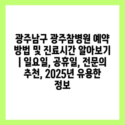 광주남구 광주참병원 예약 방법 및 진료시간 알아보기 | 일요일, 공휴일, 전연락 추천, 2025년 유용한 정보