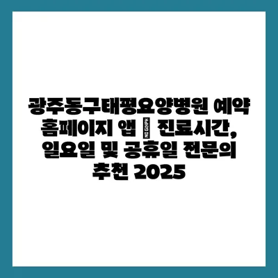 광주동구태평요양병원 예약 홈페이지 앱 | 진료시간, 일요일 및 공휴일 전연락 추천 2025는 환자들에게 보다 편리한 서비스를 제공하기 위해 새롭게 업데이트되었습니다.