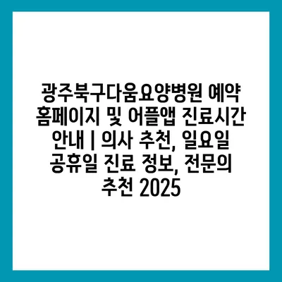광주북구다움요양병원 예약 홈페이지 및 어플앱 진료시간 공지 | 의사 추천, 일요일 공휴일 진료 정보, 전연락 추천 2025에 대해 소개합니다.