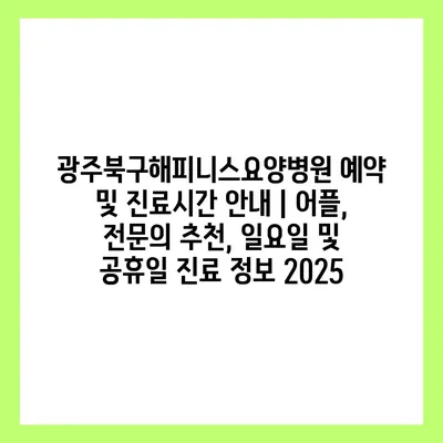 광주북구해피니스요양병원 예약 및 진료시간 공지 | 어플, 전연락 추천, 일요일 및 공휴일 진료 정보 2025 에 대해 자주 묻는 질문 TOP 5
