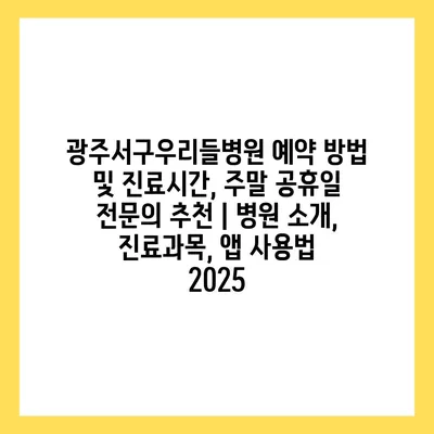 광주서구우리들병원 예약 방법 및 진료시간, 주말 공휴일 전문의 추천 | 병원 소개, 진료과목, 앱 사용법 2025