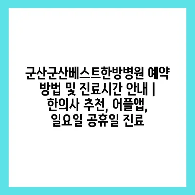 ✅ 군산베스트한방병원 예약 방법을 자세히 알아보세요.