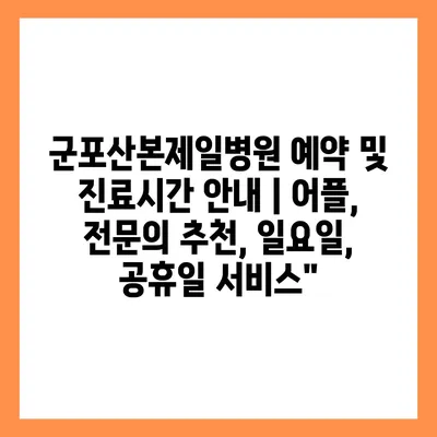 ✅ 군포산본제일병원의 예약 방법과 진료시간을 자세히 알아보세요.