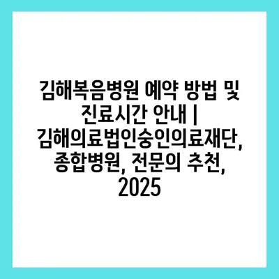 김해복음병원 예약 방법 및 진료시간 공지 | 김해의료법인숭인의료재단, 종합병원, 전연락 추천, 2025 에 대해 자주 묻는 질문 TOP 5