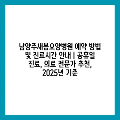 남양주새봄요양병원 예약 방법 및 진료시간 공지 | 공휴일 진료, 의료 전문가 추천, 2025년 기준에 대한 내용입니다.