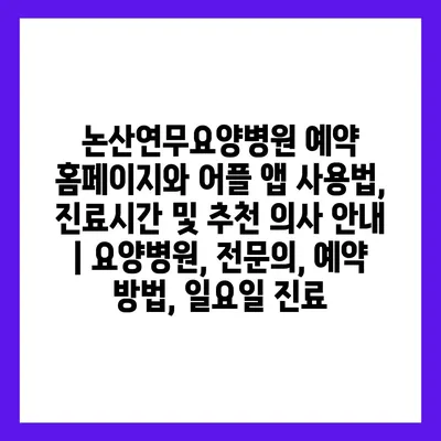 논산연무요양병원 예약 홈페이지와 어플 앱 사용법, 진료시간 및 추천 의사 공지 | 요양병원, 전연락, 예약 방법, 일요일 진료에 대해 자주 묻는 질문 TOP 5