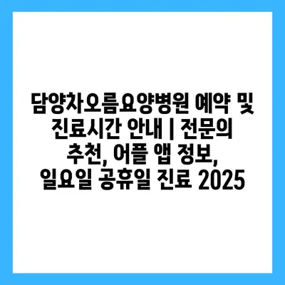 담양차오름요양병원 예약 및 진료시간 안내 | 전문의 추천, 어플 앱 정보, 일요일 공휴일 진료 2025