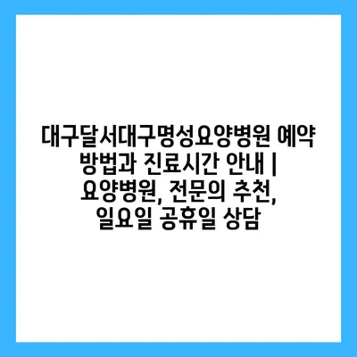 ✅ 대구명성요양병원의 예약 방법과 진료 시간에 대해 알아보세요.