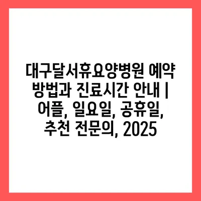 대구달서휴요양병원 예약 방법과 진료시간 공지 | 어플, 일요일, 공휴일, 추천 전연락, 2025 에 대해 자주 묻는 질문 TOP 5