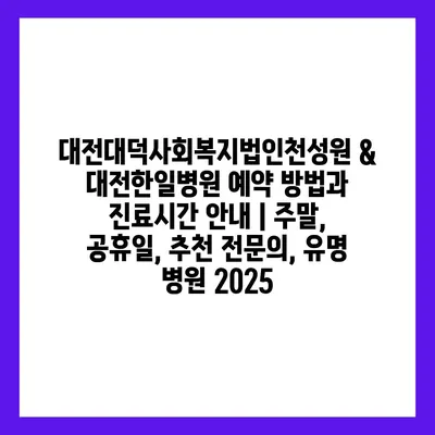 대전대덕사회복지법인천성원 & 대전한일병원 예약 방법과 진료시간 공지 | 주말, 공휴일, 추천 전연락, 유명 병원 2025 에 대해 자주 묻는 질문 TOP 5
