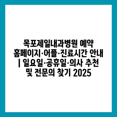 목포제일내과병원 예약 홈페이지·어플·진료시간 공지 | 일요일·공휴일·의사 추천 및 전연락 찾기 2025