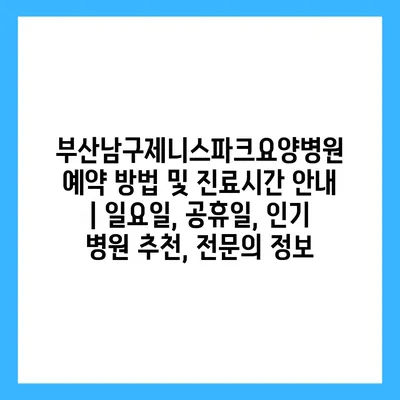 부산남구제니스파크요양병원 예약 방법 및 진료시간 공지 | 일요일, 공휴일, 인기 병원 추천, 전연락 정보에 대해 자주 묻는 질문 TOP 5