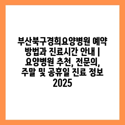 부산북구경희요양병원 예약 방법과 진료시간 공지 | 요양병원 추천, 전연락, 주말 및 공휴일 진료 정보 2025 에 대해 자주 묻는 질문 TOP 5