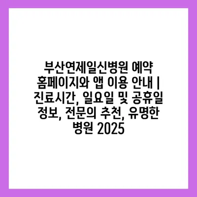 부산연제일신병원 예약 홈페이지와 앱 이용 공지 | 진료시간, 일요일 및 공휴일 정보, 전연락 추천, 유명한 병원 2025에 대해 알아보겠습니다.