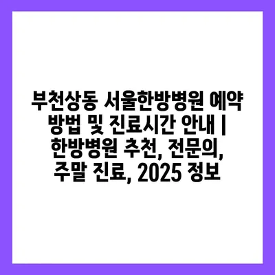 ✅ 부천상동 서울한방병원의 진료시간과 예약 방법을 쉽게 알아보세요!