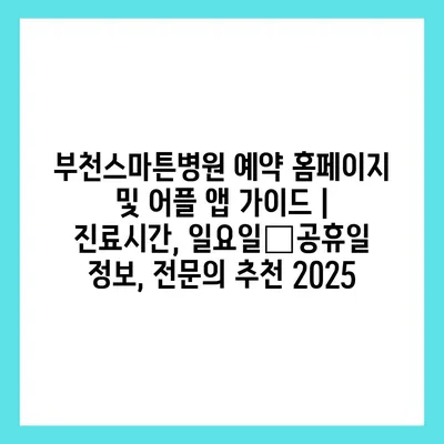 부천스마튼병원 예약 홈페이지 및 어플 앱 설명서 | 진료시간, 일요일・공휴일 정보, 전연락 추천 2025 에 대해 자주 묻는 질문 TOP 5
