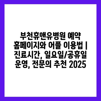 부천휴앤유병원 예약 홈페이지와 어플 이용법 | 진료시간, 일요일/공휴일 운영, 전연락 추천 2025 에 대해 자주 묻는 질문 TOP 5