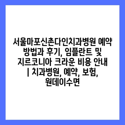 서울마포신촌다인치과병원 예약 방법과 후기, 임플란트 및 지르코니아 크라운 비용 공지 | 치과병원, 예약, 보험, 원데이수면 에 대해 자주 묻는 질문 TOP 5