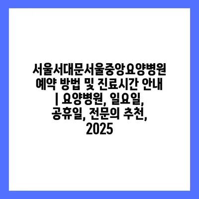 ✅ 서울서대문서울중앙요양병원의 자세한 예약 방법을 지금 알아보세요!