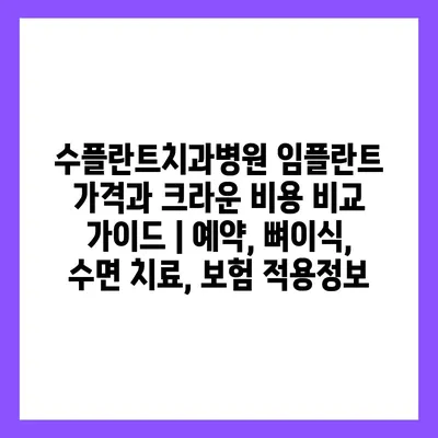 수플란트치과병원 임플란트 가격과 크라운 비용 비교 가이드 | 예약, 뼈이식, 수면 치료, 보험 적용정보