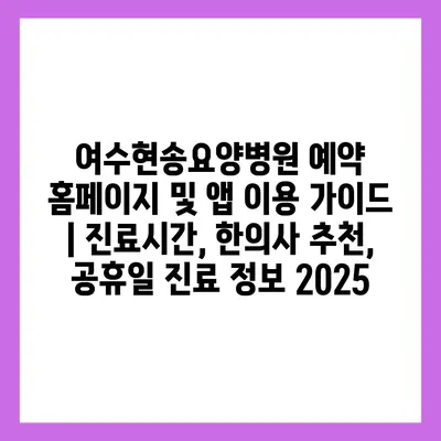 여수현송요양병원 예약 홈페이지 및 앱 이용 설명서 | 진료시간, 한의사 추천, 공휴일 진료 정보 2025