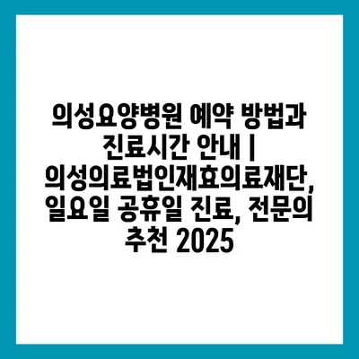 ✅ 의성요양병원의 진료시간과 예약 절차를 자세히 알아보세요.