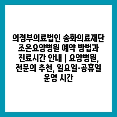 의정부의료법인 송화의료재단 조은요양병원 예약 방법과 진료시간 공지 | 요양병원, 전연락 추천, 일요일·공휴일 운영 시간 에 대해 자주 묻는 질문 TOP 5