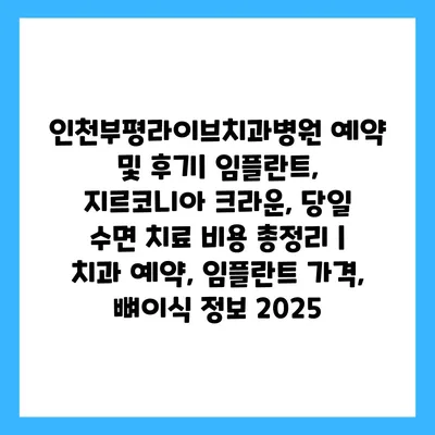 인천부평라이브치과병원 예약 및 후기| 임플란트, 지르코니아 크라운, 당일 수면 치료 비용 총정리 | 치과 예약, 임플란트 가격, 뼈이식 정보 2025 에 대해 자주 묻는 질문 TOP 5