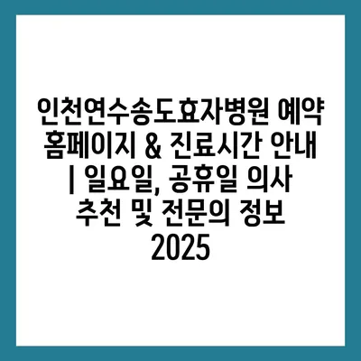 인천연수송도효자병원 예약 홈페이지 & 진료시간 공지 | 일요일, 공휴일 의사 추천 및 전연락 정보 2025에 대해 알아보겠습니다.