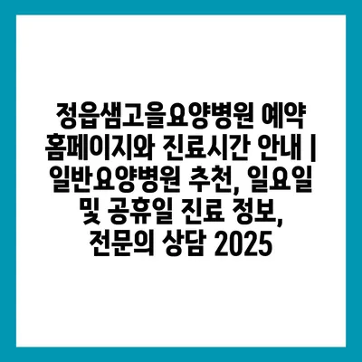정읍샘고을요양병원 예약 홈페이지와 진료시간 안내 | 일반요양병원 추천, 일요일 및 공휴일 진료 정보, 전문의 상담 2025