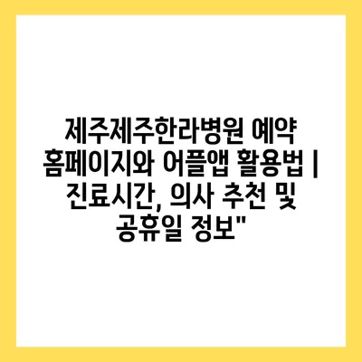 ✅ 제주한라병원 예약 절차와 팁을 자세히 알아보세요.