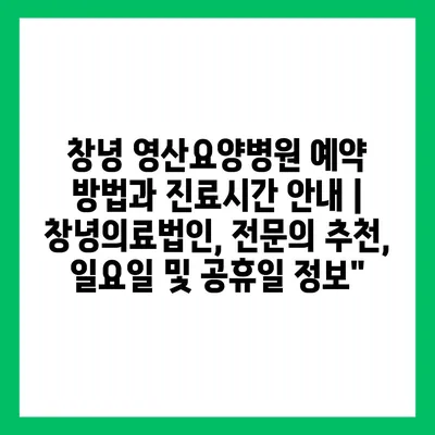 창녕 영산요양병원 예약 방법과 진료시간 안내 | 창녕의료법인, 전문의 추천, 일요일 및 공휴일 정보”