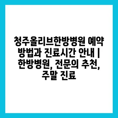 ✅ 청주올리브한방병원의 진료시간과 예약 방법을 자세히 알아보세요.