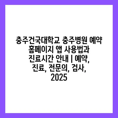 충주건국대학교 충주병원 예약 홈페이지 앱 사용법과 진료시간 공지 | 예약, 진료, 전연락, 검사, 2025에 대한 내용을 소개합니다.