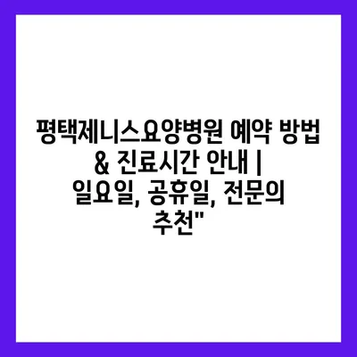 ✅ 평택제니스요양병원의 예약 방법과 진료시간을 지금 바로 알아보세요!