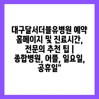 신안의료법인신안대우병원 예약 홈페이지 및 어플 이용 방법과 진료시간 안내 | 병원 추천, 전문의, 일요일 및 공휴일 운영 정보, 2025년도 변동 사항
