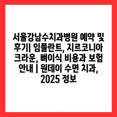 서울강남수치과병원 예약 및 후기| 임플란트, 지르코니아 크라운, 뼈이식 비용과 보험 안내 | 원데이 수면 치과, 2025 정보