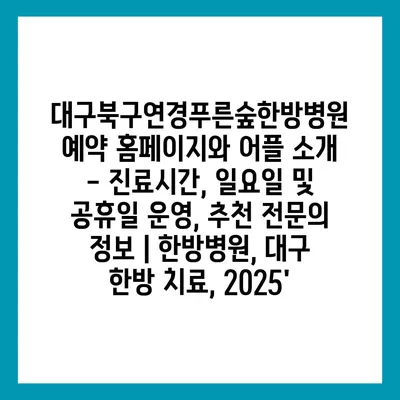대구북구연경푸른숲한방병원 예약 홈페이지와 어플 소개 – 진료시간, 일요일 및 공휴일 운영, 추천 전문의 정보 | 한방병원, 대구 한방 치료, 2025′