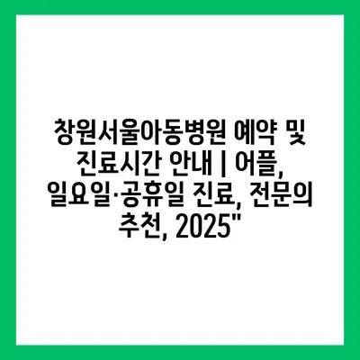 창원서울아동병원 예약 및 진료시간 안내 | 어플, 일요일·공휴일 진료, 전문의 추천, 2025″