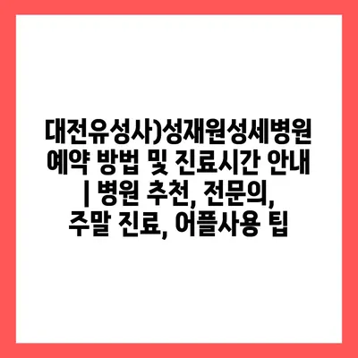대전유성코젤병원 예약 방법과 진료시간 | 진료시간, 의사 추천, 일요일 및 공휴일 이용 안내 2025