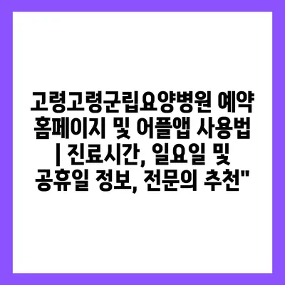 고령고령군립요양병원 예약 홈페이지 및 어플앱 사용법 | 진료시간, 일요일 및 공휴일 정보, 전문의 추천”