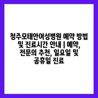 청주모태안여성병원 예약 방법 및 진료시간 안내 | 예약, 전문의 추천, 일요일 및 공휴일 진료