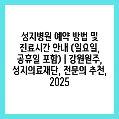 성지병원 예약 방법 및 진료시간 안내 (일요일, 공휴일 포함) | 강원원주, 성지의료재단, 전문의 추천, 2025